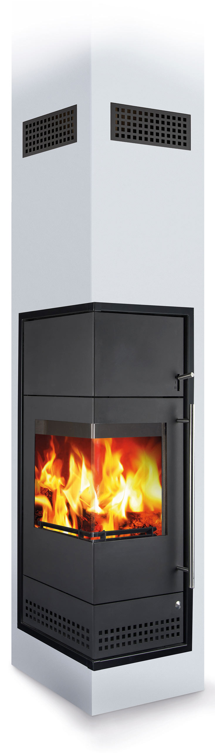 Minimaler Platzbedarf – Maximales Wohnbehagen. Der classic PANORAMAplus braucht keinen zusätzlichen Ofen. Denn hier knistert Ihr Feuer direkt im Schornstein!